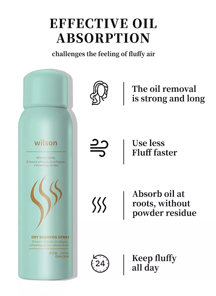 ウィルソンインスタント洗浄不要クールドライシャンプースプレーは、多くの油頭が一時的に外に出て髪を洗えない問題を救出しました。主原料は米デンプンで、デンプンは多孔質構造、吸着性を持ち、一般的な吸湿性吸着原料であり、頭皮の余分な油を効果的に吸収し、髪の汚れをきれいにすることができ、髪から製品の除去を促進するためにいくつかの界面活性剤と静電気成分をスプレーして追加します。使用後はフレッシュでナチュラルな感触。