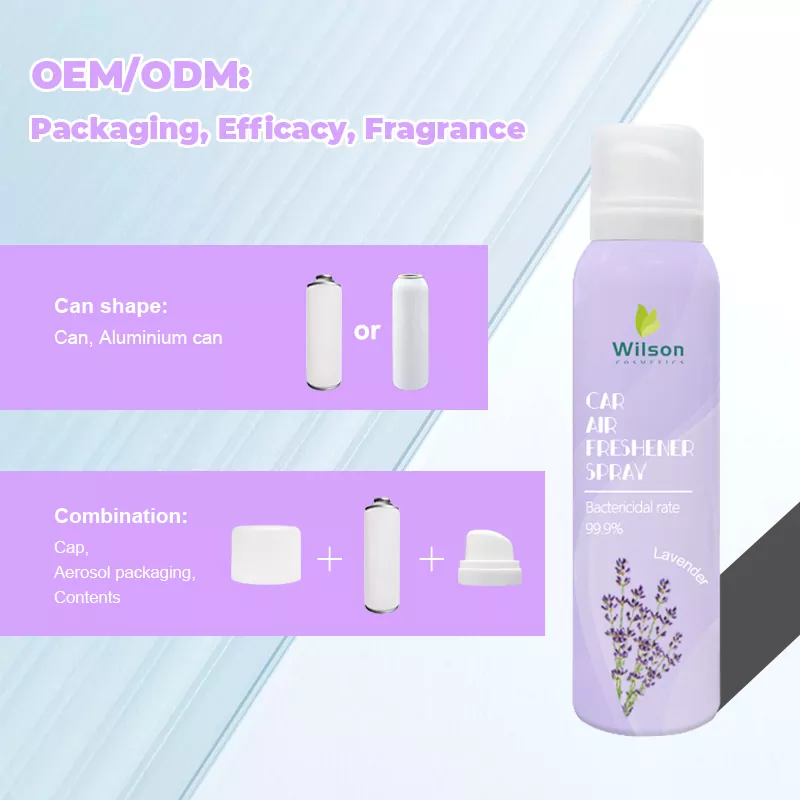ウィルソンの長持ちする香水フレグランス車用芳香スプレーは、自家用車、商用車、バス、トラック、公共交通機関など、ほぼすべてのタイプの車両に適しており、車内のよりクリーンで健康的な空気環境を提供できます。車内の空気の質を改善することに加えて、長距離運転により車内の空気が密閉され、臭いやその他の汚染物質が発生しやすくなります。ウィルソンのロングラスティング香水フレグランスカー芳香スプレー缶を使用すると、疲労や不快感を引き起こさず、新鮮で快適な環境を維持できます。