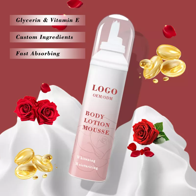 ウィルソン クイック吸収ライトウェイト テクスチャー ボディ ローション ムースは、体内に吸収され、長時間持続する保湿剤です。当社のムースはアルミ缶に入ったエアゾール状で、押すと豊かな泡が立ちます。従来の化粧水の重くてベタベタとした感触に比べ、ボディムースはふんわりと濃密な雲のような軽い感触をもたらします。さらに、さまざまな処方をご用意しております。たとえば、複数のヒアルロン酸や天然植物エキスなどの保湿効果の高いエキスを配合することで、泡の微細構造を皮膚直下の成分の組成に合わせやすくすることができ、肌に集中的な水分補給とロック、長時間にわたる保湿効果をもたらします。肌が内側から潤っていきます。