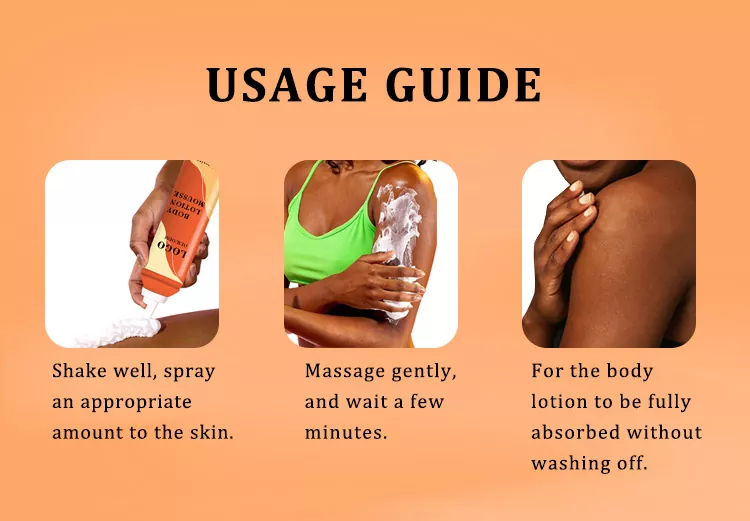 ウィルソンのクイック吸収ライトウェイト テクスチャー ボディ ローション ムースは、軽量で泡状のテクスチャー、1 秒でミルクが素早く吸収され、体の保湿体験を再定義する深くベタつかない保湿感で消費者に人気があり、現代の忙しい生活における効率性と楽しみに最適です。当社のフォーミュラは濡れた体と乾いた体の両方での使用をサポートしますが、水分を閉じ込めるためにシャワー後に少し湿らせて使用するとさらに効果的です。使用方法は次のとおりです。